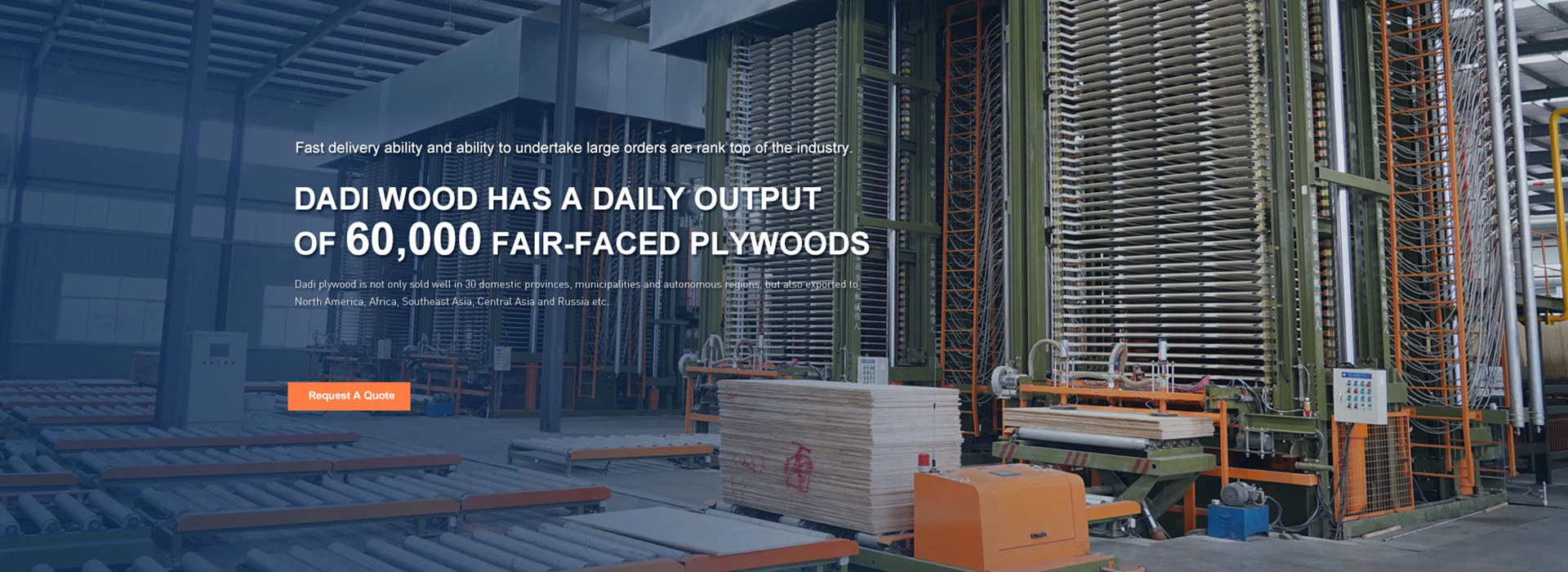 Dadi Wood buvo įkurta 2002 m. lapkritį ir gali pasigirti savo prekių ženklais DADIWISA ir DADIVISA. Specializuojamės aukštos -rūšies raudonos plėvele dengtos faneros, „DadiVisa“ faneros, juoda plėvele dengtos faneros ir kitų sąžiningos -sluoksnių faneros gamyboje. Gamykla užima 300 000 kvadratinių metrų plotą, joje dirba daugiau nei 500 profesionalių technikų, daugiau nei 60 vadovaujančių darbuotojų ir daugiau nei 20 rinkodaros darbuotojų.